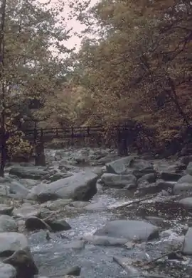The Rock Creek Park Act authorized the purchase of no more than 2,000 acres (810 ha) of land, extending north from Klingle Ford Bridge in the District of Columbia (approximately the northern limit of the National Zoo), to be "perpetually dedicated and set apart as a public park or pleasure ground for the benefit and enjoyment of the people of the United States".[6] The Act also called for regulations to "provide for the preservation from injury or spoliation of all timber, animals, or curiosities within said park, and their retention in their natural condition, as nearly as possible".[7] Rock Creek Park is the oldest natural urban park in the National Park System.[8] Park construction began in 1897.[3]
