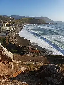 Rockaway Beach is a shoreline area of the Pacific Ocean in the southern portion of Pacifica, California, United States, approximately 7 miles (11 km) south of the city of San Francisco. It is located within a gently curving embayment with direct access via Rockaway Beach Avenue and providing easy access to Highway 1.