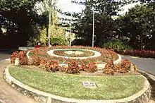 A floral clock, on a concrete base planted with flowering annuals and is the centrepiece of the circular drive. The clock face presents to the northern entrance to the gardens. A small plaque commemorating the donation of the clock from the Rotary Club of Rockhampton is located at its base.[1]