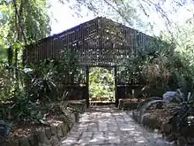The community services building, a small open truss steel and glass structure on a concrete block base located in the main circular drive is surrounded by established decorative gardens. The Hugo Lassen Fernery is located behind this building. The Fernery is a timber slated structure, built into the shape of a cross with eye shaped openings cut into the slated walls. The Fernery houses a series of rock gardens with an established and mature exotic fern collection.[1]