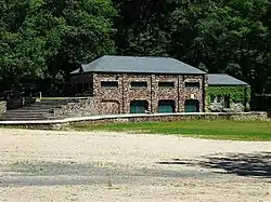 The buildings and structures of the park are characterized by rustic cobblestone architecture. The three main entrances to the park each have gates built out of cobblestone, that at Dutton Avenue the most elaborate. The most architecturally sophisticated building is the Summerhouse, a pavilion structure featuring rounded arches and roof finials.[2]