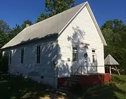 The Rocky Branch School is a historic school building in rural eastern Benton County, Arkansas. It is located at the northern terminus of Arkansas Highway 303, where it joins with County Roads 85 and 99 (the latter being Rocky Branch Road), and stands opposite the Rocky Branch Church. It is a one-room schoolhouse, with two doors facing east. The school was built c. 1914 in the community of La Rue, and was moved to its present site c. 1960 when that community was inundated by the creation of nearby Beaver Lake. It is a well-preserved example of a country district schoolhouse, with little alteration since its construction.[2]