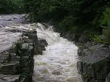 Rocky Gorge is a waterfall and the name of a scenic and picnic area along the Swift River in the White Mountain National Forest of New Hampshire, United States, next to the Kancamagus Highway. Swimming is not permitted in the falls at Rocky Gorge because of a near-fatal accident involving Dorothy Sparks in 1942. At least two other non-fatal accidents, each involving two people, have occurred since 1942.