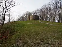 Ruins of an old water tank remain on a hill in the east part of the park.