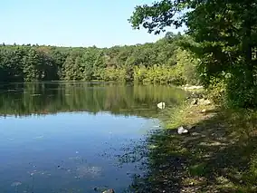 Rocky Woods is a 491-acre (199 ha) open space preserve located in Medfield, Massachusetts. The preserve, managed by the land conservation non-profit organization The Trustees of Reservations, is notable for its rugged terrain. Rocky Woods offers 6.5 miles (10.5 km) of trails and former woods roads available for hiking, horseback riding, mountain biking, dog walking, catch and release fishing, camping, snowshoeing and cross country skiing.[1][2] The preserve is part of a larger area of protected open space including the abutting Fork Factory Brook preserve, also managed by The Trustees of Reservations.