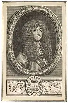 Roger Palmer, 1st Earl of Castlemaine, PC (3 September 1634 – 21 July 1705) was an English courtier, diplomat, and briefly a member of parliament, sitting in the House of Commons of England for part of 1660. He was also a noted Roman Catholic writer. His wife Barbara Villiers was one of Charles II's mistresses.