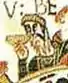ET HIC EPISCOPUS CIBU(M) ET POTU(M) BENEDICIT ("And here the bishop blesses the food and drink"). The feast at Hastings, after which a castle was ordered to be built, following which battle was joined. Roger de Beaumont is possibly depicted as the bearded figure, see detail above. Bayeux Tapestry