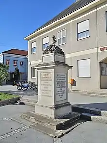A monument to Haydn was erected by Count Karl Leonhard Harrach in 1793, during the composer's own lifetime; it is thus the oldest of all Haydn monuments.[6] It was originally placed in the park of Harrach chateau, on an artificial island (the "Haydn-Insel") in the Leitha River, created for the purpose.[7] The monument was later transferred to the center of the village, where it stands today. When Haydn returned from London in 1795, he visited the monument during an emotional return to his home town.[8]