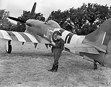 ![]() Squadron Leader R P Beamont of No. 609 Squadron RAF, in his Hawker Typhoon Mark IB | |