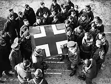 In mid-May 1943 he returned to Hawker's as a test pilot, performing experimental testing of both the Typhoon and new Tempest.[39][23] In February 1944 AOC Hugh Saunders invited Beamont to form the first Tempest wing (No. 150), with the rank of acting wing commander. At this time the available Tempests were dispersed around maintenance units; Beamont had to fly between the units to locate them. By May 1944 his wing had become operational with two Tempest squadrons (No 3 and No 486) and one with Spitfire IX.[40][23] Their first operations were ground attack sorties against trains or airfields.[41] On D-Day+2 (8 June) the wing shot down three Bf 109s over the invasion beaches without loss, the first one credited to Beamont and the first to a Tempest.[42][3]