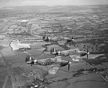 During the air raids of The Blitz, No. 87 Squadron was assigned night fighter duties defending Bristol. Directing the Hurricanes by searchlight was largely ineffective.[20] In frustration, Beamont suggested that on moonlit nights they should cross the channel and strafe the Luftwaffe aerodromes.[21] This tactic was adopted by Group and proved successful, with Beamont taking part in the destruction of several aircraft.[22]