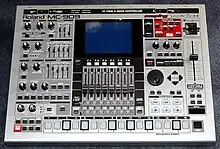 The discontinued Roland MC-909 Sampling Groovebox combines the features of a synthesizer, sequencer, and sampler, with extensive hands-on control of both the sound engine and the sequencing flow. It was intended primarily for live performance of pre-programmed patterns consisting of up to 16 tracks of MIDI data. It was released by Roland Corporation on October 8, 2002. This product was announced at the AES Fall Convention in 2002. It is the direct successor to the Roland MC-505 and is the predecessor to the Roland MC-808. Which eventually ended the "Groovebox by year 2010" line of products by Roland which began in the year 1996 with the Original Roland MC-303 groovebox. The Roland Groovebox began again resurgence in the year 2019 with a two new modern & redesign Roland MC-707 GROOVEBOX/Roland MC-101 GROOVEBOX. The Roland MC-909 was developed from the blueprint of Roland's own "Roland Fantom-S Workstation & Roland Fantom-X Workstation" and uses the same structure and operating system, with some differences regarding the Patterns section, not implemented in the Roland Fantom S/X6/X7/X8 Workstation.