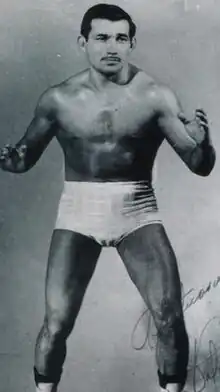 Rolando Hernández Verástegui (February 1, 1915 – March 29, 2001) was a Mexican professional wrestler and wrestling trainer, better known as Rolando Vera. One of the most popular luchadores in Mexico in the 1950s, he was also an early star of Consejo Mundial de Lucha Libre.[1] Vera wrestled throughout the world during his long career and held the NWA World Middleweight Champion for over four years.[2] He also trained numerous wrestlers during his life including father-and-son Blue Demon and Blue Demon Jr., Sangre Chicana, Angel Mortal, René Guajardo and Sugi Sito.