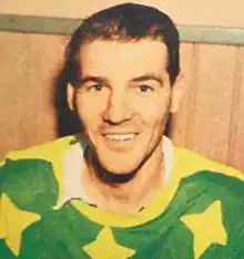 Pettersson made 95 international appearances for the Swedish national team, scoring 22 goals, being part of their roster in six different World Championship tournaments.[6] Most notably, he won Sweden's first gold medal in 1953, as well as winning the silver medal in 1947 and bronze medal in 1954.[7][2][6][4] He also competed in the 1948 Winter Olympics in Garmisch-Partenkirchen, where his country finished in 4th place.[8][9]