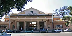 Roma Porta San Paolo is the terminal train station of the Rome–Lido railway line in Rome (Italy). The station is connected to the station Piramide of the metro (line B) and to the Roma Ostiense railway station of the Ferrovie dello Stato Italiane. It has six tracks.