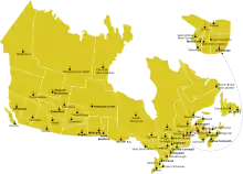 The Diocese of Edmundston, (Latin: Dioecesis Edmundstonensis) is a Latin Church ecclesiastical territory or diocese of the Catholic Church in New Brunswick, Canada. The diocese was erected 16 December 1944. The Diocese of Edmundston is a suffragan diocese in the ecclesiastical province of the metropolitan Archdiocese of Moncton.