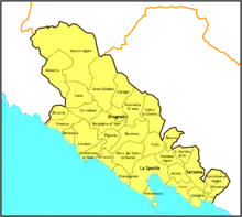In 1787 the diocese of Pontremoli, and in 1821 the diocese of Massa Ducale were separated from Luni-Sarzana, but the diocese of Brugnato, separated from Luni by Pope Innocent II in 1133, was added by Pope Pius VII on 25 November 1820 in the Bull Sollicita.[33] The diocese of Luni-Sarzana was directly subject to the Holy See, but Brugnato was a suffragan of Genoa.[34]
