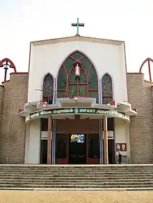 St. Mary's Co-Cathedral was consecrated in 1975 as 'The Pro Cathedral of Our Lady of Victories' by Bishop Michael Bosco Duraisamy.[1] The parish of Arisipalayam was bifurcated from Shevapet in 1953 and was erected as St. Francis Xavier's parish. The chapel of St. Francis Xavier's Minor Seminary served as the parish church till 1991. The new Infant Jesus Cathedral was consecrated on 27 November 1991, and dedicated to Infant Jesus. This magnificent Cathedral was meticulously planned and carefully constructed with strenuous efforts by late Bishop Most Rev. Dr. Michael B. Duraisamy.