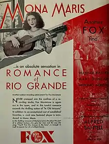 Romance of the Rio Grande (also: En kärleksnatt vid Rio Grande) is a 1929 American pre-Code Western film directed by Alfred Santell and starring Warner Baxter, Mona Maris, Mary Duncan, and Antonio Moreno. It was produced and distributed by the Fox Film Corporation in both a Movietone talking version and also a silent version.[2][3]