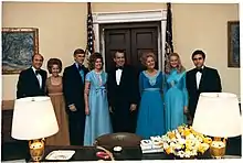 Astronauts normally received a spot promotion on the successful completion of a mission; Evans' promotion to captain was made official in January 1973. He received his Navy astronaut wings from John Warner, the United States Secretary of the Navy. The Apollo 17 crew were fêted at parties and receptions. They were driven around the Los Angeles Memorial Coliseum at Super Bowl VII, they met Elvis Presley in Las Vegas and were hosted by President Richard Nixon at the White House and Camp David. Cernan and Evans refused to meet with Muhammad Ali because of the boxer's 1967 refusal to serve in the U.S. armed forces, but accepted hospitality from Frank Sinatra.[74]
