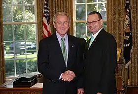 Ambassador Ronald Jumeau meets with George W. Bush in 2007.
