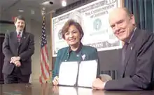 - ↑ Mark Sherman, "U.S. treasurer quits, to return to California..." Associated Press, via The Oakland Tribune (May 23, 2003).
