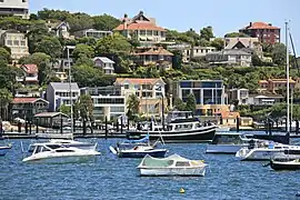 According to the 2016 census, the population of Rose Bay (including Vaucluse) was 10,053. 54.0% of people in Rose Bay are Australian-born, compared to 59.9% for the wider Sydney area.[18] Of the immigrants, most are from South Africa (8.7%), then England (5.3%), New Zealand (2.4%), Israel (1.7%) and China (1.3%). Of Rose Bay's population, 27.3% stated they were Jewish, 24.0% said they had no religion, 17.2% said they were Catholic, 11.6% did not state a religion and 9.7% said they were Anglican. The median weekly household income was $2,272, compared to the Australian median of $1,438.[19]