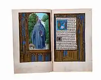 Virgin and Child on a Crescent Moon, f.197v. Accepted as by Gerard David, one of only a few miniatures attributed to him.[6]