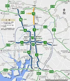 1. "Nagoya Expressway Route Map". Retrieved 2008-04-18.
