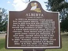 From 1898 to 1927, the Alberta community thrived just north of Roy. Alberta began when E. M. Werkheiser established a sawmill, and the Louisiana and Arkansas Railway came into the area. By 1900, some three hundred were employed at a sawmill of the Bienville Lumber Company, which built a school, which also served as a chapel for area churches. There was a grocery store, dry goods store, cotton gin, blacksmith shop, and several gristmills. In 1915, the sawmill was moved to Mississippi. A post office operated at Alberta until 1927[2]