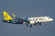 • One of Royal Brunei Airlines' Airbus A320neo (registration V8-RBD) has a new special livery related to Brunei tourism, which was revealed in an official launch event for the aircraft's new fleet in September 2018.