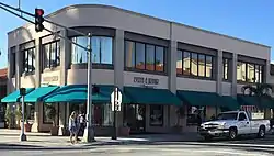 • The Exchange Building at 100 North County Road.[1]:36 Initially designed by architect Bruce Kitchell in 1924, the Exchange Building was originally a two-story Mediterranean Revival architectural-type structure and had an arcade on the first floor. However, John Volk significantly redesigned the building in 1941, transforming its architectural style to Art Moderne.[1]:13