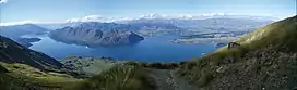 Roys Peak is a mountain in New Zealand,[1] standing between Wānaka and Glendhu Bay. It offers a full-day's walk with views across Lake Wanaka and up to the peak of Mount Aspiring / Tititea. The track zigzags steeply up the side of Mount Roy through thick grass until the ridge to the summit. The peak was named in honour of the Scottish hero Rob Roy MacGregor by early settlers.