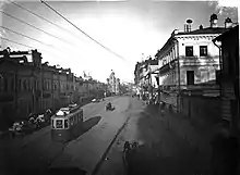 The All-Russia Exhibition of 1896 changed the street. In the area of the Unity Square and the Pokhvalinsky descent, funiculars were built. Opposite the Oksky Pontoon Bridge, a power station appeared that provided the city with electricity. 21 June 1896 in Nizhny Novgorod was opened tramway. The line, 3.5 versts long (3.7 kilometers or 2.32 miles), passed from Skoba (Unity Square) to the bridge, connecting both funiculars. At the opening of the exhibition on Rozhdestvenskaya Street, the houses of the Blinov brothers' merchants (Blinovsky Passage) and the stock exchange were built.