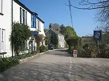 Ruanlanihorne, as the name of the parish is spelled, is entirely rural in character with wooded areas in the river valleys.[1] It is bounded to the north by Tregony parish, to the east by Veryan parish, to the south by Philleigh parish and to the west by St Michael Penkevil parish.[2] Apart from the church town of Ruan Lanihorne, the only other settlements of any size are in the south of the parish: Treworga and Ruan High Lanes which is right on the parish's boundary with Veryan.[1][2]