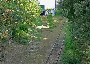 It forms the eastern boundary of Parc Georges-Brassens and crosses over the disused tracks of the Petite Ceinture railway line.