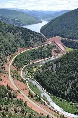 Ruedi Reservoir is a reservoir on the Western Slope of the Continental Divide on the Fryingpan River. It sits about 15 miles (24 km) upstream of the town of Basalt, Colorado, near Aspen.[3] The reservoir is located within the White River National Forest, and straddles the county line between Pitkin County and Eagle County.