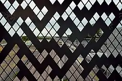 The Cambridge North railway station is decorated with architectural panels displaying the evolution of Rule 30 (or equivalently under black-white reversal, Rule 135).[10] The design was described by its architect as inspired by Conway's Game of Life, a different cellular automaton studied by Cambridge mathematician John Horton Conway, but is not actually based on Life.[11][12]