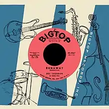 After their first recording session for Big Top Records in New York City had ended in failure, their manager Ollie McLaughlin persuaded them to rewrite and re-record an earlier song they had written, "Little Runaway", to highlight Crook's unusual instrumental sound. On January 21, 1961, they recorded "Runaway" at Bell Sound Studios in New York City, with Harry Balk as producer, Fred Weinberg as audio engineer and also session musicians on several sections: session musician Al Caiola on guitar, Moe Wechsler on piano, and Crook playing the central Musitron break. Other musicians on the record included Al Casamenti and Bucky Pizzarelli on guitar, Milt Hinton on bass, and Joe Marshall on drums. Bill Ramall, who was the arranger for the session, also played baritone sax.[8] After recording in A minor, producer Balk sped up the recording to pitch just below a B-flat minor.[9] "Runaway" was released in February 1961 and was immediately successful. On April 10 of that year, Shannon appeared on Dick Clark's American Bandstand, helping to catapult it to the number one spot on the Billboard Hot 100, where it remained for four weeks.[10] Two months later, it reached number one on the UK's Record Retailer chart, spending three weeks in that position.[11] On Billboard's Hot R&B Sides, "Runaway" peaked at number three.[12][13]