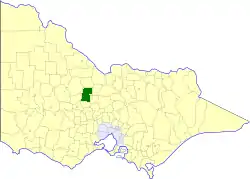 Marong was first incorporated as a road district on 27 August 1861, and became a shire on 23 December 1864. On 1 October 1915, the Borough of Raywood, which was gazetted on 17 January 1865 on 23.31 square kilometres (9.00 sq mi) of land 28 kilometres (17 mi) north of Bendigo,[2] was united with Marong. On 1 October 1990, the Shire of Marong became a rural city, under the Local Government Act 1989.[3]