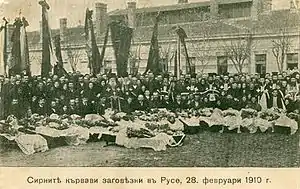 The text reads: "The blood Sunday before Lent in Ruse, 28 February 1910".