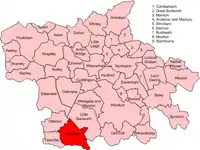 Rushton is a village and civil parish in the unitary authority of Cheshire West and Chester and the ceremonial county of Cheshire, in the north west of England, approximately 6 miles (10 km) west of Winsford and 2 miles (3 km) north east of Tarporley. According to the 2011 census, Rushton has 484 people.[1] Rushton is predominantly countryside,[2] however does includes the village of Eaton. This village contains the Jessie Hughes Village Hall, Eaton Primary School and the church of St Thomas.[3]