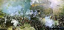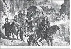After Russian armies liberated the Eastern Georgian Kingdom (allied since the 1783 Treaty of Georgievsk) from the Qajar dynasty's occupation of 1802, during the Russo-Persian War (1804–13), they clashed with Persia over control and consolidation of Georgia, and also became involved in the Caucasian War against the Caucasian Imamate. At the conclusion of the war, Persia irrevocably ceded what is now Dagestan, eastern Georgia, and most of Azerbaijan to Russia, under the Treaty of Gulistan.[48] Russia attempted to expand to the southwest, at the expense of the Ottoman Empire, using recently acquired Georgia at its base for its Caucasus and Anatolian front. The late 1820s were successful years militarily. Despite losing almost all recently consolidated territories in the first year of the Russo-Persian War of 1826–28, Russia managed to bring an end to the war with highly favourable terms granted by the Treaty of Turkmenchay, including the formal acquisition of what are now Armenia, Azerbaijan, and Iğdır Province.[49] In the 1828–1829 Russo-Turkish War, Russia invaded northeastern Anatolia and occupied the strategic Ottoman towns of Erzurum and Gümüşhane and, posing as protector and saviour of the Greek Orthodox population, received extensive support from the region's Pontic Greeks. Following a brief occupation, the Russian imperial army withdrew back into Georgia.[50]