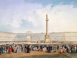 In order to repress further revolts, censorship was intensified, including the constant surveillance of schools and universities. Textbooks were strictly regulated by the government. Police spies were planted everywhere. Under Nicholas I, would-be revolutionaries were sent off to Siberia, with hundreds of thousands sent to katorga camps.[46] The retaliation for the revolt made "December Fourteenth" a day long remembered by later revolutionary movements.