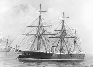 The Russian ironclad Sevastopol (Russian: Севастополь) was ordered as a 58-gun wooden frigate by the Imperial Russian Navy in the early 1860s, but was converted while under construction into a 32-gun armored frigate. She served in the Baltic Fleet and was reclassified as a training ship in 1880. Sevastopol was decommissioned five years later, but was not sold for scrap until 1897.