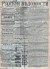 Russkiye Vedomosti (Russian: Русские ведомости) was a Russian liberal daily newspaper, published in Moscow from 1863 till 1918.
