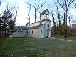 Rye Meeting House, also known as Milton Mission Chapel, Grace Chapel, and the Friends Meeting House, is a historic Quaker meeting house located at Rye, Westchester County, New York. The property is adjacent to the Bird Homestead. It is a one-story, wood-frame building on a stone foundation with two main volumes, a nave and an asymmetrical transept. The exterior is sheathed in clapboard and shingles and exhibits characteristics of the Stick style. The front facade features a 2+12-story bell tower. The building was built in the 1830s as a school house. It was moved to its present site in 1867, and enlarged in 1871, 1875, and 1877. At the time, the church was a mission church of nearby Christ's Church, an Episcopal church. The Quakers obtained the property in 1959. The property was deeded to the city of Rye in 2002.[2]