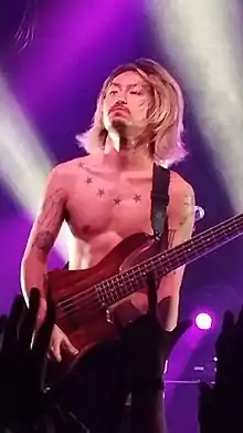 That same year, he was invited by Toru to form a rock band, alongside their upperclassman Alex and Toru's friend Koyanagi Yuu. In the beginning, Kohama initially had no interest in joining a band or playing bass, until he listened to Red Hot Chili Peppers and was inspired to play bass by Flea.[4] During early days of One Ok Rock, Kohama only talked to Toru because he felt inferior and didn't talk to vocalist Takahiro Moriuchi for about a year because he was afraid of him.[5] He was the most furious when Alex was caught groping a schoolgirl on a subway and almost quit playing bass to learn to play guitar. Kohama collaborated with drummer Tomoya Kanki and wrote the song "Deeper Deeper".[6]