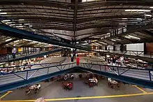 Due to budget problems, construction only began in 1978, with the earthworks being carried out. Método, Maubertec and Sul Americana de Engenharia S/A (SADE) were contracted to design and build the premises. After Setúbal's term ended, the city government of São Paulo was assumed by Reynaldo de Barros, who modified the project at the request of his culture secretary Mário Chamie. Instead of concentrating just an extension of the Mário de Andrade Library, the project was redesigned based on the Centre Pompidou in Paris.[15] Construction of the building began in 1981, financed by the Nossa Caixa bank, and its first stage was completed in 1982. The São Paulo Cultural Center was opened on the last day of Reinaldo de Barros' term, unfinished, at noon on May 13, 1982.[16][17]