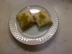 Sütlü Nuriye (Milky Nuriye) is a Turkish dessert similar to baklava, but instead of syrup it contains milk, which gives a whitish look to the dessert. The name means Nuriye (Turkish female name) with milk. It is considered a speciality of Diyarbakir.